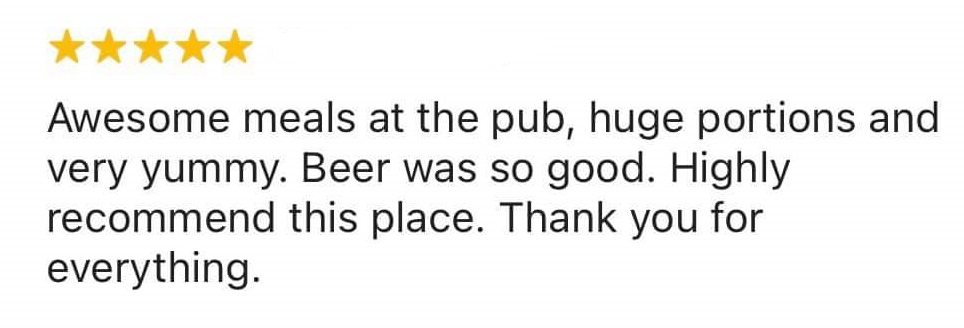 Icy cold tap beer, Great meals, Dining Room, Balcony, Pool tables and Beer Garden.